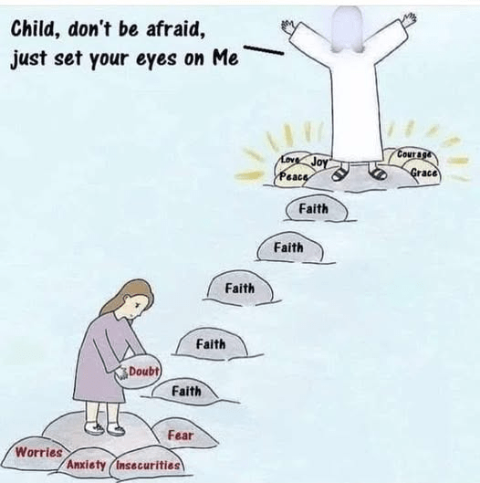 The picture below so spoke to me today, does it to you too? Are you, like many, looking always at the worries, fears, doubts and listening to the lies of the enemy instead of taking steps of faith and trusting in Jesus, in His grace, peace, love and hope that are ours in Him. When you look at this picture it seems so mad that we would have these things in the way of our relationship with Jesus the only one that will never let us down, will never leave us or forsake us. Maybe you’ve been hurt so much, life’s been hard, it can be hard to focus on Him because of the things that fill our minds, including the lies of the enemy. What stops you from trusting Jesus? What stops you from having His peace? What is your faith in today? Trust in Jesus. Spend time with Him. Find the truth in Gods Word and renew your mind by it. He is the only one who will never leave you or forsake you. He died for you to have eternal life, here, now and forever with Him. His outstretched arms on the cross, paying the penalty for our sin so we wouldn’t have to. That’s love. That’s hope. That’s grace. That’s our God. So take those steps of faith and trust Him. And as you surrender to Him your pain, your insecurities, doubts fears etc recieve His gifts to you of joy, peace, grace and love forevermore \0/